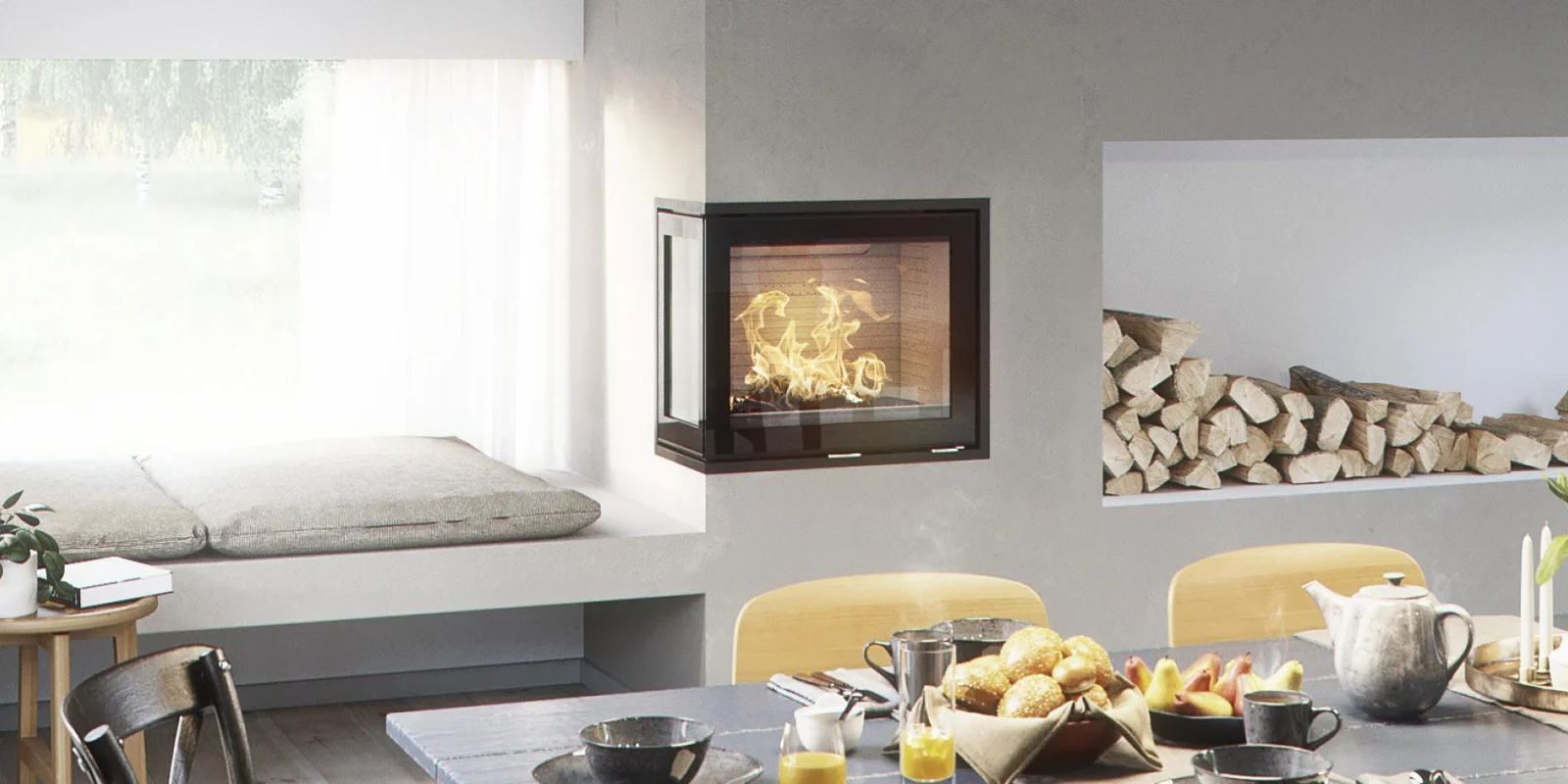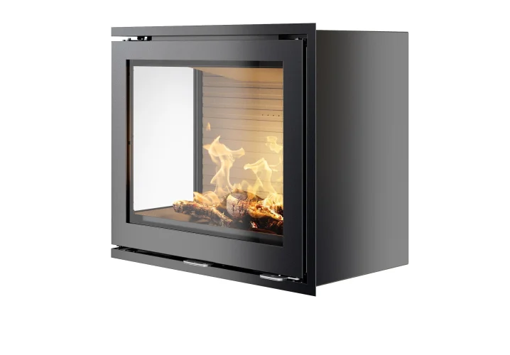 RAIS 600-2 heeft twee grote glasoppervlakken die haast het gevoel van een open haard geven. U kunt kiezen uit een links of rechts model. Beide zijn perfect voor inbouw in een hoek. Deze inzethaard is ook verkrijgbaar met glas aan één of drie zijden. U kunt kiezen uit een stalen of een glazen deur.