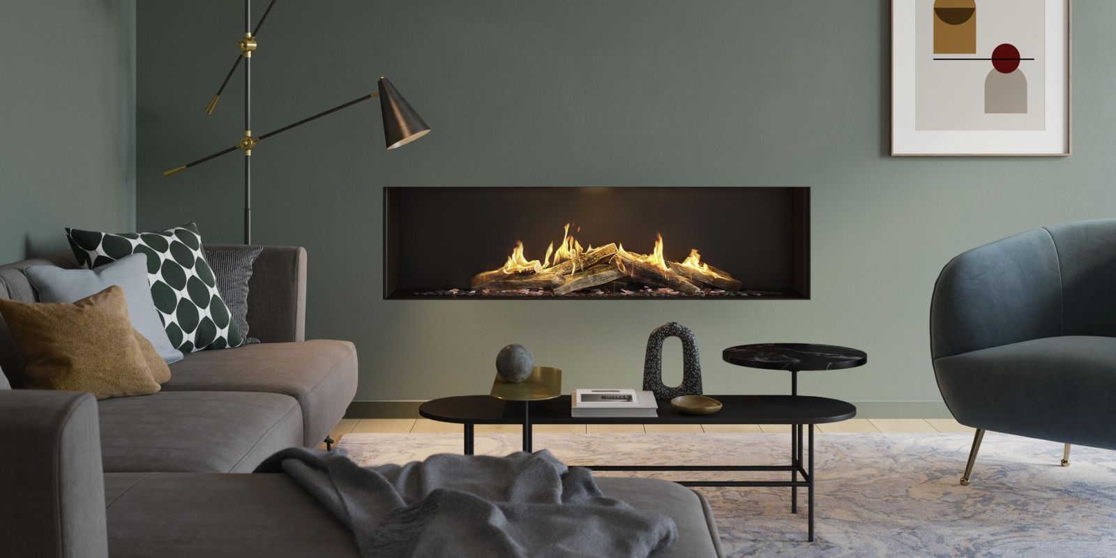 RAIS Visio 100 F har glas på en side. Med sin bredde er Visio 100 F en iøjnefaldende gaspejs, der sætter et elegant aftryk på enhver bolig.