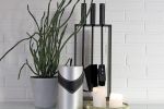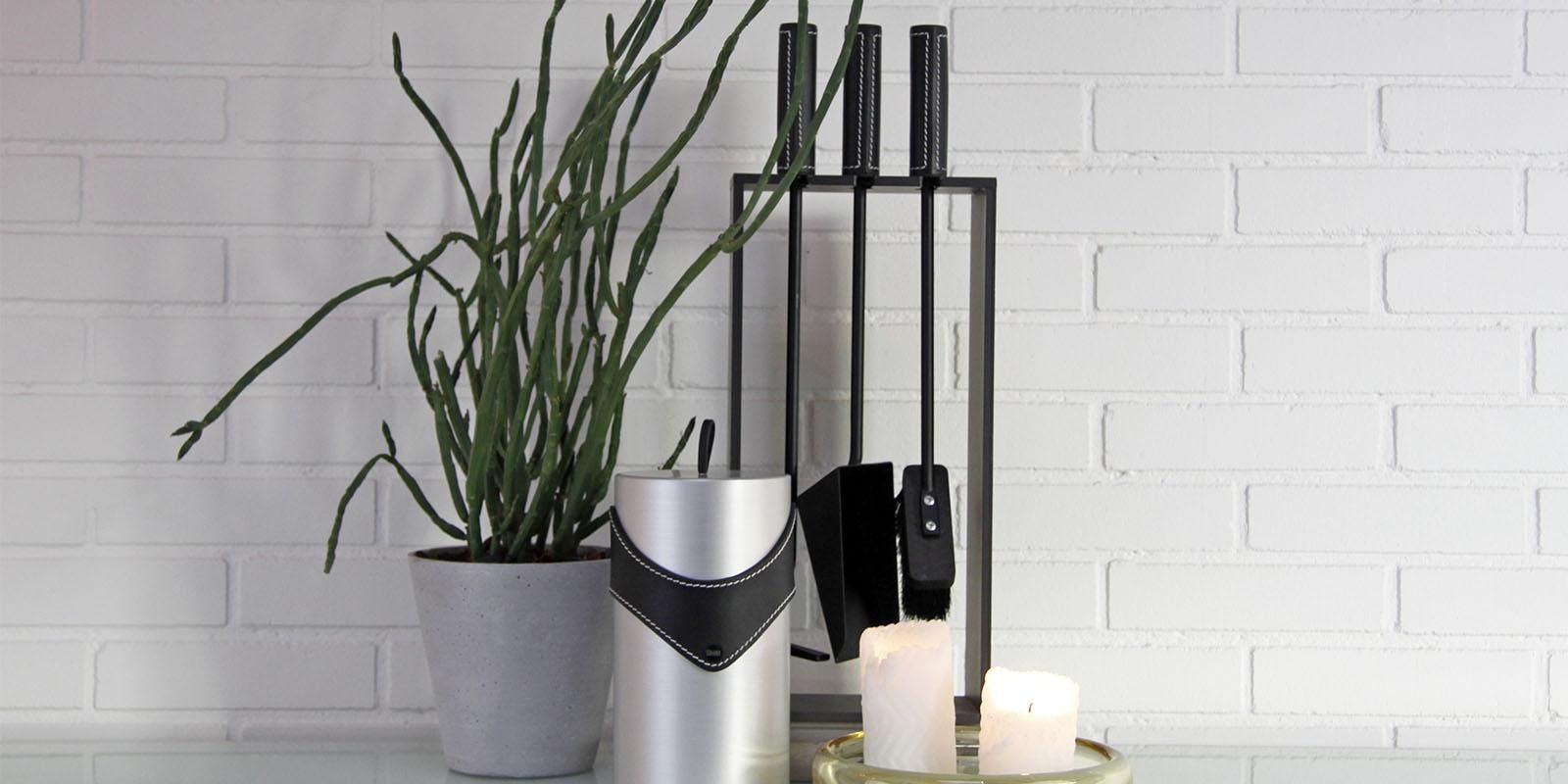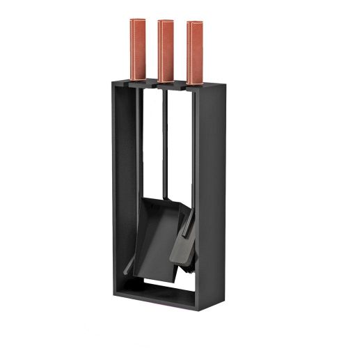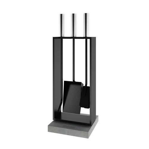 Fireplace tools in a raw and minimalist design that combines steel, iron and concrete. Place it on the floor or mount it on the wall. Choose between handles in stainless steel or leather.