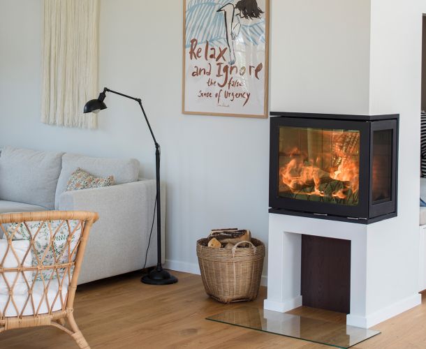RAIS wood-burning stoves are known for their soot-free glass panes and their uniquely beautiful view of the fire. The secret behind these unique features is our holistic approach to the glass panes in the combustion chamber.