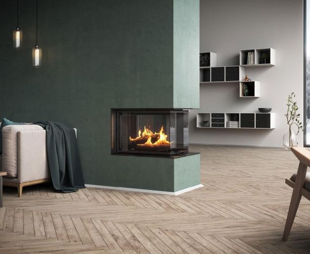 RAIS Visio 3 L is an elegant fireplace insert with extra-large windows, creating an elegant frame around the fire. A simple black or stainless steel frame is barely noticeable – and almost creates the sensation of an open fire. The door opens by pushing the pane upwards.