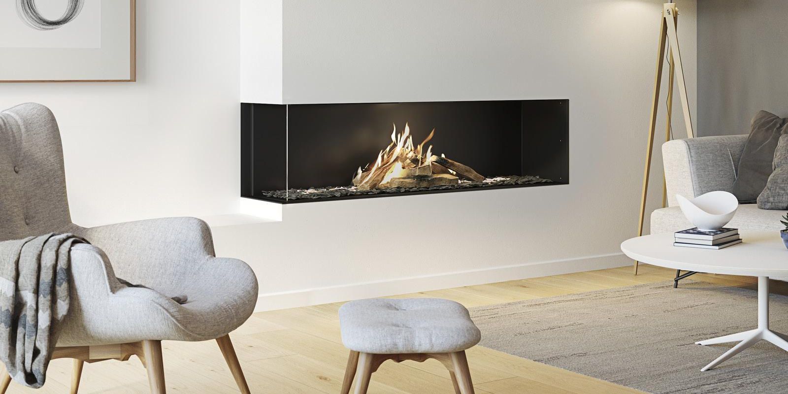 RAIS Visio 160 LC is the largest of the corner models with glass on the left side – measuring as much as 160 cm in width. The large glass pane helps create an extravagant corner, where the fire is truly done justice. You can use your telephone or tablet or the accompanying remote control to quickly and easily turn up and down the heat.