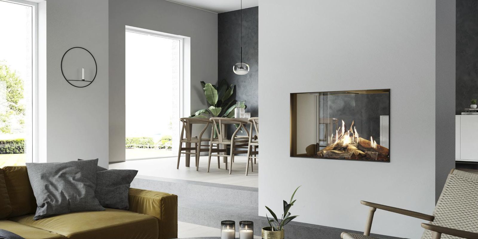 RAIS Visio 90 T is, with a glass width of 90 cm, the largest of the tunnel models. The gas fireplace can be placed so the flames can be enjoyed from two different rooms. A discreet, simple frame elegantly showcases the flames. You easily control the fire with the help of the remote control or your telephone/tablet, and you can quickly adjust the heat as needed.