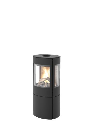 Den vakkert buede døren og sideglassene optimaliserer synligheten av de dansende flammene, som vakkert kan ses fra flere vinkler, noe som sikrer at denne peisen ikke bare er en varmekilde, men også et sentralt kunstverk i hjemmet.
