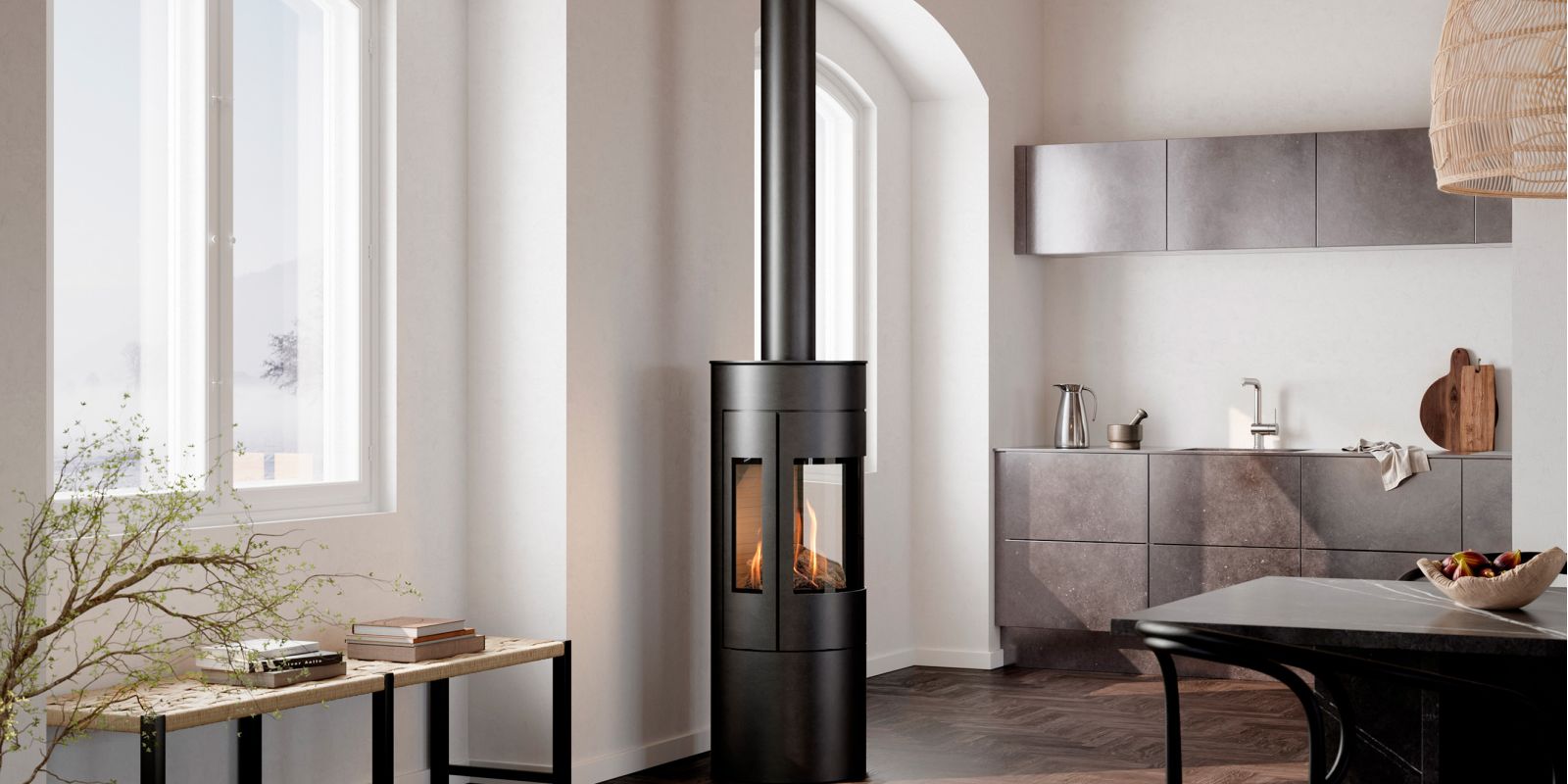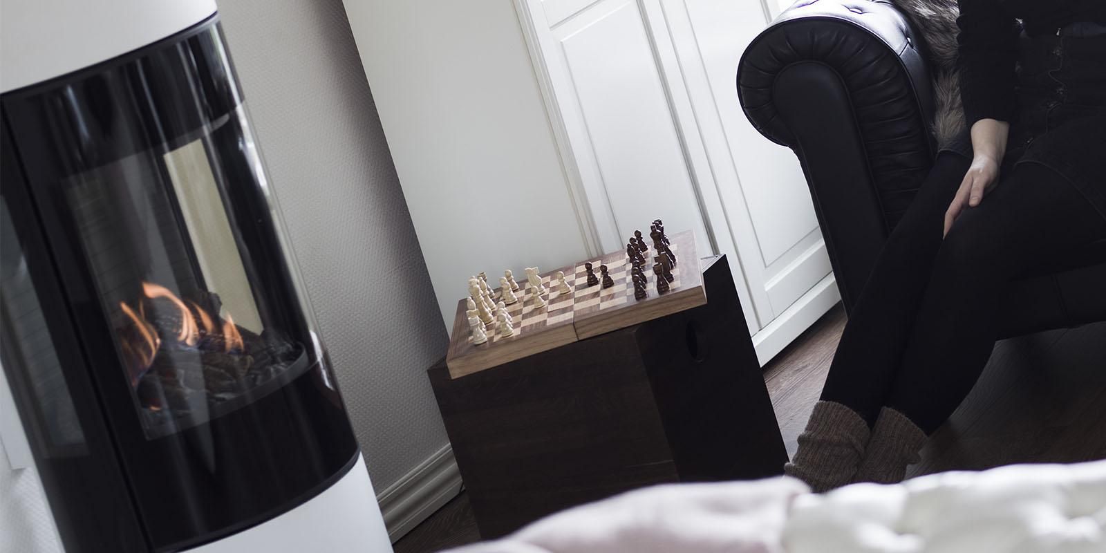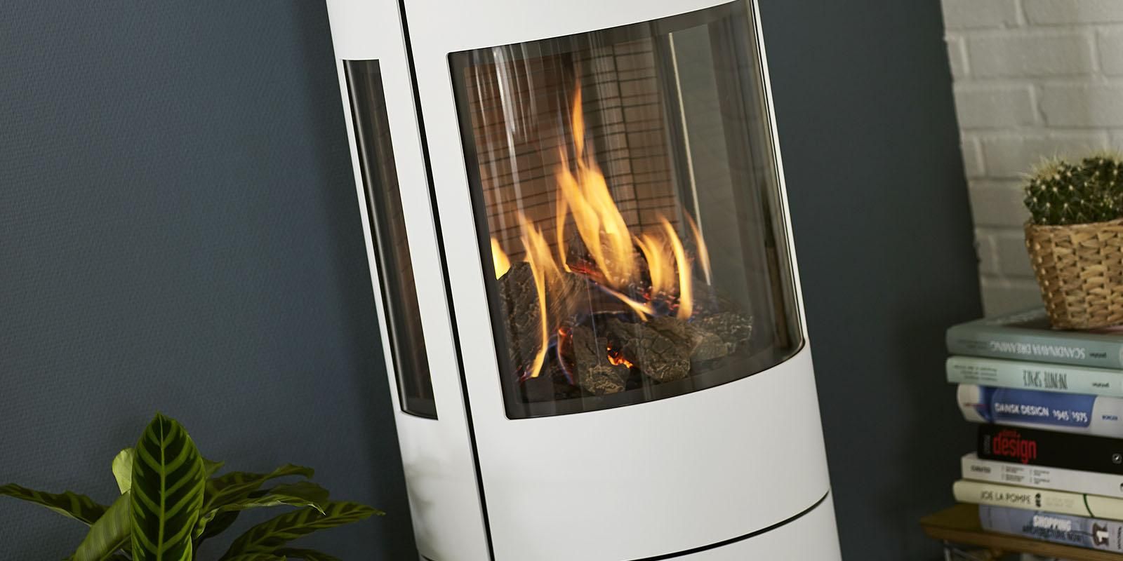 Viva L 120 Gass har en stilren design med store glassruter slik at du kan nyte ilden, uansett hvor du befinner deg i rommet. Gasspeisen skrus på med et enkelt klikk på fjernkontrollen, og du innstiller ønsket temperatur, flammenes høyde osv. helt enkelt