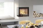 Denne peisinnsatsen fås også med glass til én eller tre sider. Velg mellom stål- eller glassdør.