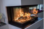 Med glass til tre sider kan den elegante Visio 3 fremstå markant og diskret på samme tid midt i hjemmet. Man aner bare så vidt ovnen, som på aller vakreste vis fremhever ilden. Døren åpnes ved å bare skyve glasset opp. Smart og bekvemt. Den rolige forbrenningen leverer en god og jevn varme.
