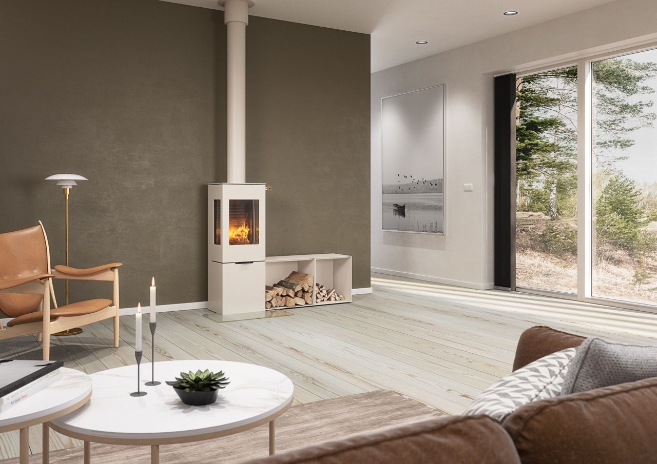 Nexo 120 har en firkantet og ren design, som både er diskret og samtidig iøynefallende. De store glassrutene gir et fantastisk innsyn til ilden, hvor flammene virkelig er i fokus.