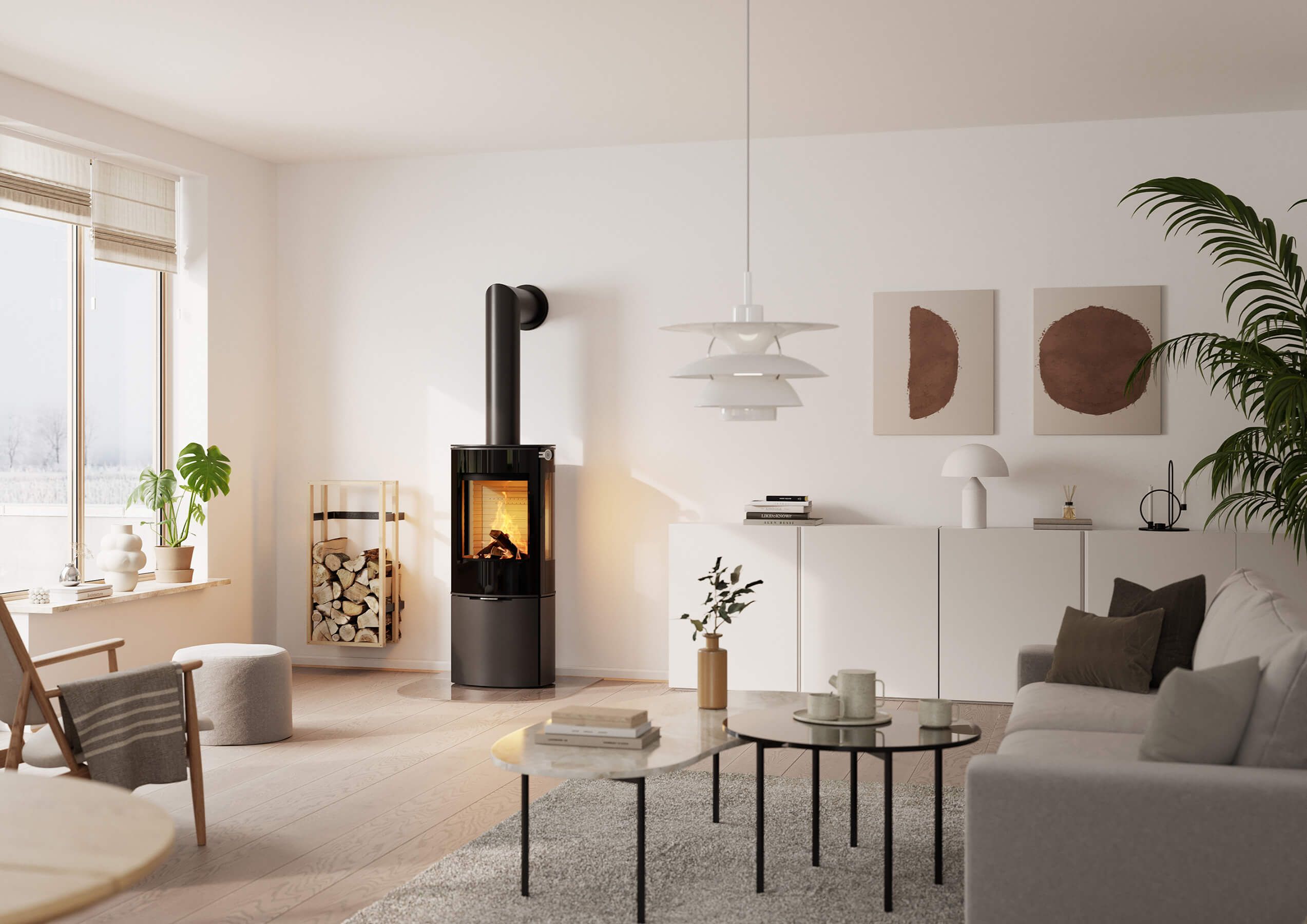 RAIS Caro 110 kännetecknas av sin vackert rundade design och sina mjuka former, den diskret välvda fronten och de raka sidorna. Den stora glasluckan ger en vacker flambild och låter elden och lugnet fylla rummet.