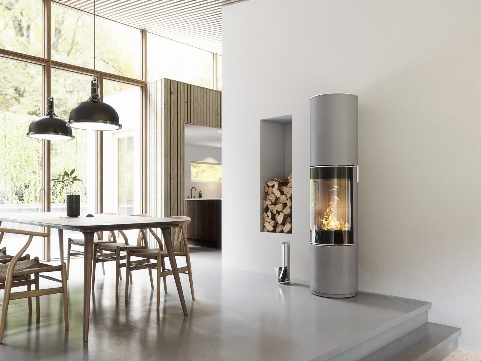 Den stora och vackert rundade rutan ger en helt unik upplevelse av elden, som har fritt spelrum i den enorma brännkammaren. Handtaget är utformat i en solid och kraftfull design, som understryker kaminens kvalitet och tyngd.