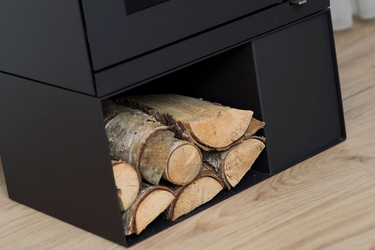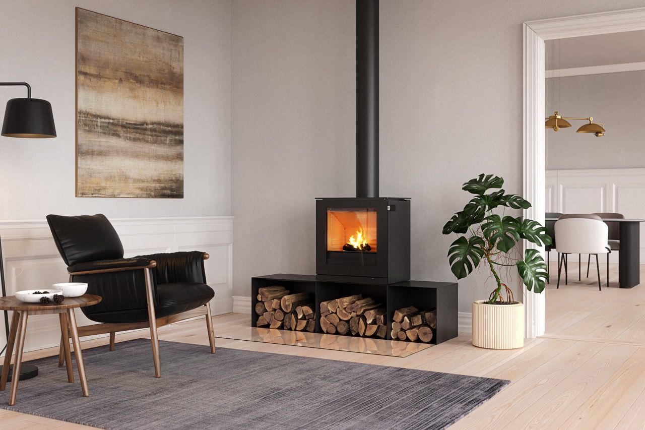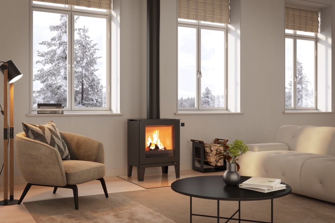 Kubistisk. Elegant minimalistisk. Funktionalistisk. RAIS Q-Tee 2 är en mindre kamin med mycket stor brännkammare – en perfekt, effektiv värmekälla. I denna kamin kan man även elda med kol eftersom brännkammaren har extra förstärkning och lufttillförsel. Det stora glaset täcker hela kaminens front och visar upp en vacker flambild. Handtaget är diskret placerat på sidan av kaminen.