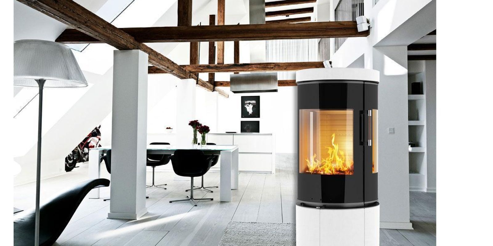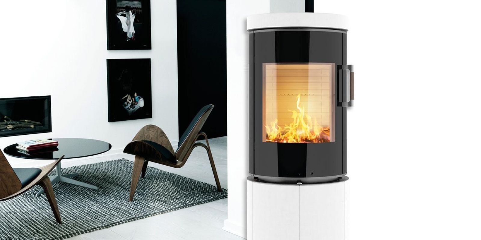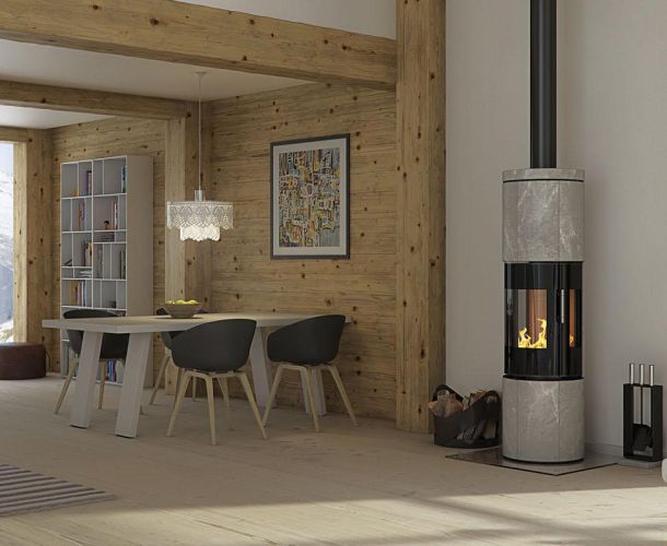 Denna braskaminen representerar i lika delar vacker formgivning och förnuftig värmeekonomi.