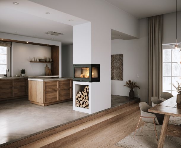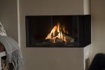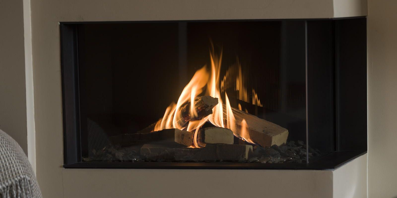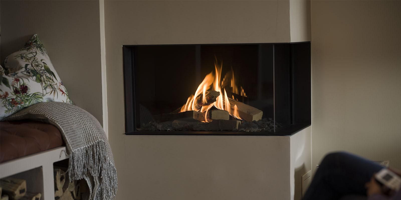 RAIS Visio 100 RC är en hörnmodell med glas på höger sida. Njut av den breda flambilden från två håll och skapa ett iögonfallande blickfång i ditt hem.