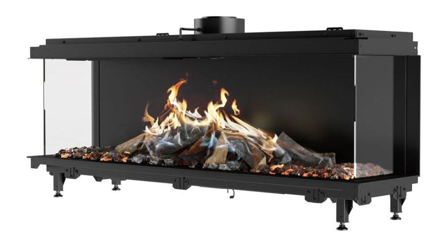 RAIS Visio 160 3S har ett frontglas på inte mindre än 160 cm. Detta är den största av modellerna med glas på tre sidor. Här finns det mängder av lågor, oavsett vilken sida du ser gaskaminen från. Diskret inramad med en stålram, har denna gaskamin en otroligt autentisk flambild. Du justerar enkelt värmen från kaminen med den medföljande fjärrkontrollen eller en app på telefonen/surfplattan.